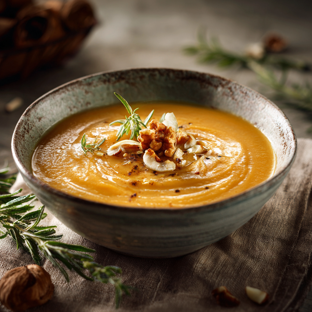 On commence par un délicieux velouté de panais, noix et jus de pomme 😋